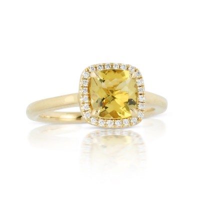 14K White & Yellow Gold Pc Yellow Beryl Diamond Ring
