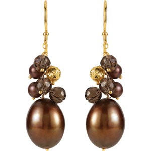 650157 / Set / 14K Yellow / Cultured Chocolate Freshwater Pearl / Pair / Polished / Pearl And Smoky Quartz Earrings